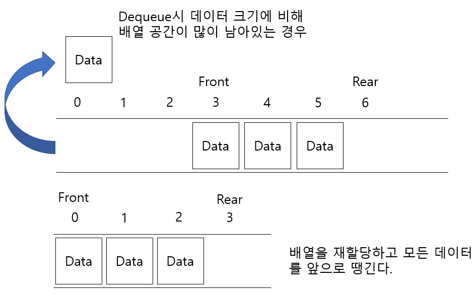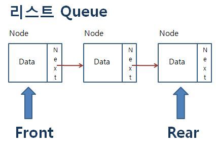 연결리스트에서 Enqueue와 Dequeue를 위해 Front, Rear Node를 멤버변수로 선언하였다.