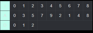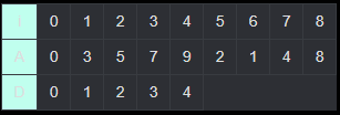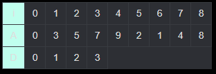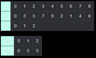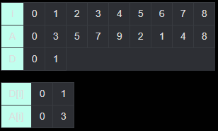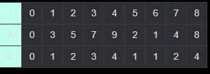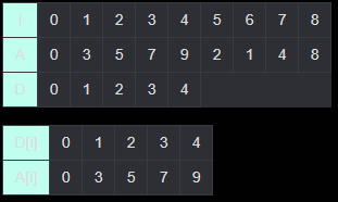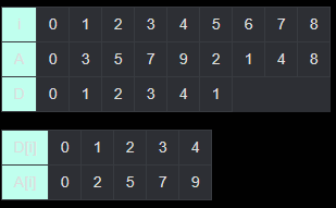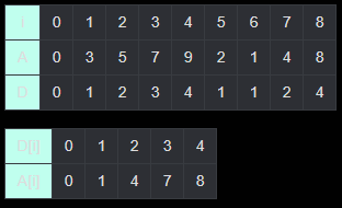 (i = 0일 때 A[i] = 0, D[i] = 0이다.)