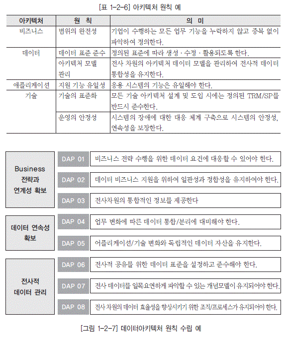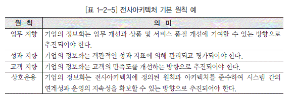 - 기대효과 : 원칙이 전사아키텍처 수립에 미치는 영향 또는 준수시의 기대효과
