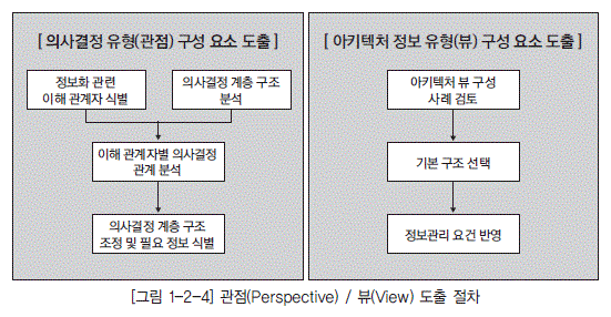 의사결정 유형은 조직의 의사결정 구조와 시스템의 생명주기와 관련된 이해관계자를 파악하여 각 조직 사이의 이해 관점을 정의한다. 아키텍처정보 유형은 정보시스템을 이해하기 위해서 필요한 정보를 유사한 것끼리 그룹화하고, 기업의 환경에 맞도록 추상화의 레벨을 맞추는 것을 의미한다.