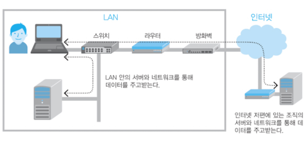 컴퓨터 네트워크에는 구체적으로 어떤 것이 있는지 좀 더 세분화하여 살펴보자. 우리 주변에서 자주 듣는 말로 '인터넷'이 있다. 인터넷이라는 말의 기원은 '인터네트워크(Internetwork)'로, 전 세계에 산재해 있는 네트워크를 연결하는 거대한 네트워크를 뜻한다. 'LAN'이라는 말도 많이 들어봤을 것이다. LAN은 '로컬 영역 네트워크(Local Area Network)'의 약자로, 기업이나 조직 등 비교적 좁은 범위 안에 존재하는 컴퓨터를 연결하는 네트워크를 뜻한다. LAN 케이블은 이러한 LAN을 연결하기 위한 매체이며, LAN 스위치는 LAN을 구성하기 위한 네트워크 기기이다.