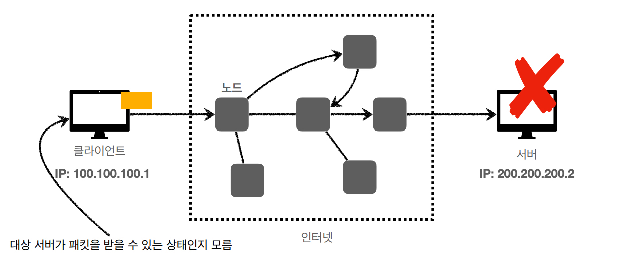 클라이언트는 대상 서버가 패킷을 받을 수 있는 상태인지 모른다.