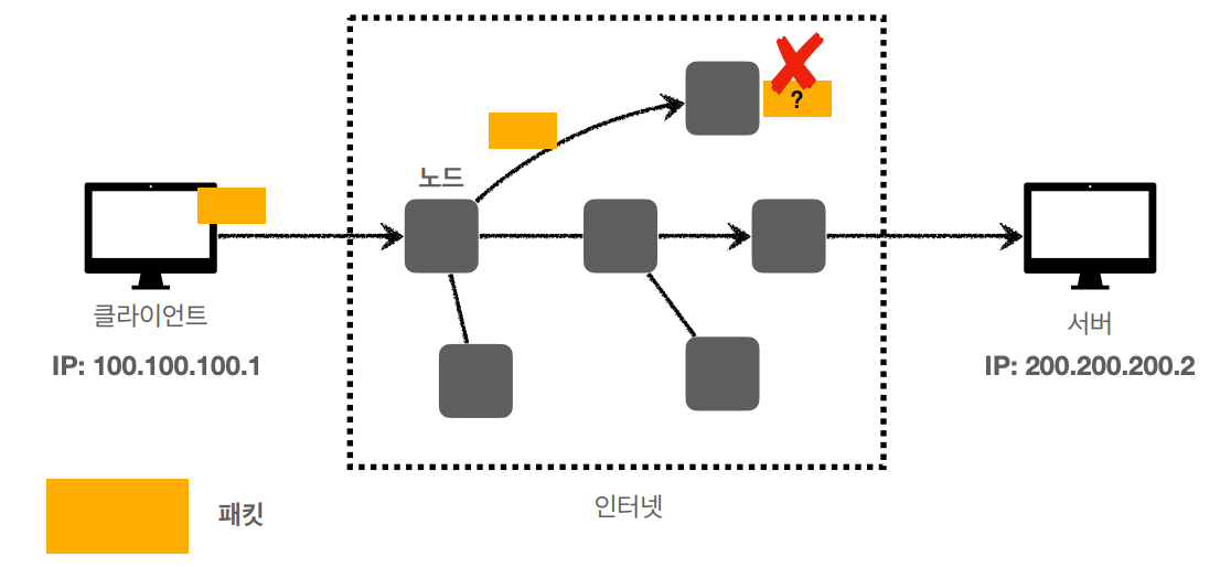 패킷을 전송하는 과정에서 중간 노드가 꺼져있거나, 문제가 생긴다면 패킷이 소실될 수 있다.