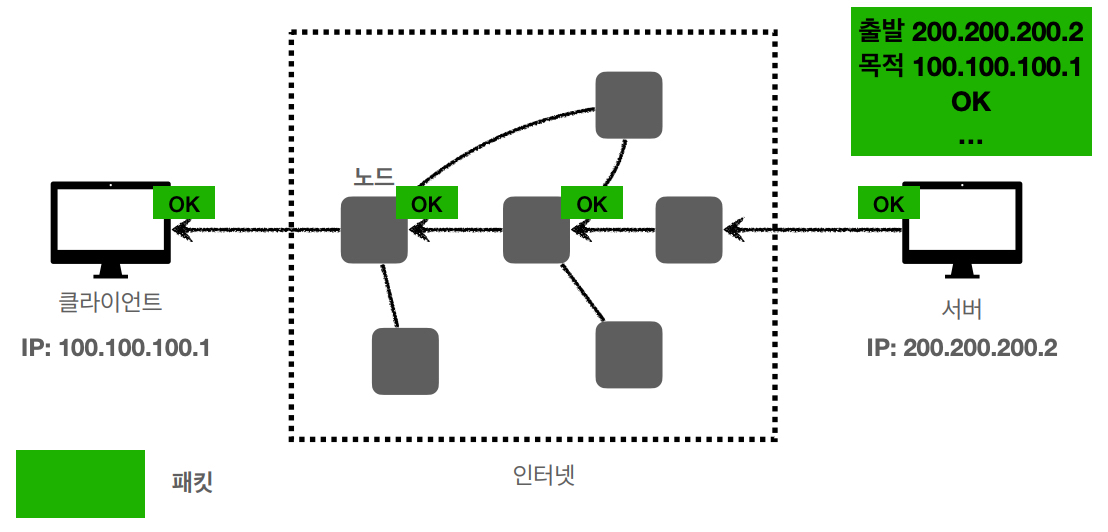 물론 인터넷 망은 복잡하기 때문에 처음 클라이언트에서 보내온 경로와 다른 경로로 전송될 수도 있다.