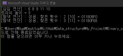 cout << "[탐색 연산] : 성공, 찾은 횟수 : " << m_searchCount