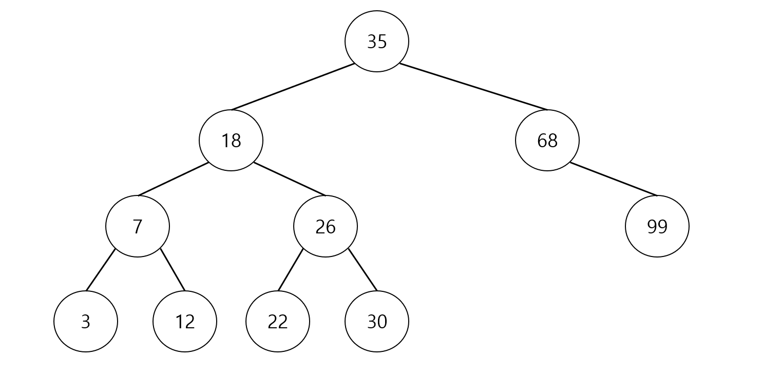 cout << "[삽입 연산] : 35 18 7 26 12 3 68 22 30 99";