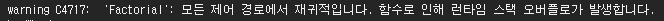 팩토리얼 재귀함수에 종료 조건을 빼보고 실행을 해보면 다음과 같다.