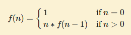 재귀는 본질적으로 재귀적인 문제나 그러한 자료구조를 다루는 프로그램에 적합하다. 예를 들어 정수의 팩토리얼(Factorial)은 다음과 같이 정의한다.