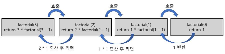 Factorial(3)을 호출하면 다음과 같이 동작한다.