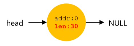 4096바이트 크기의 메모리 청크가 있다고 하자. 즉, 힙의 크기는 4KB이다. 이를 빈 공간 리스트로 관리하기 위해서 먼저 리스트를 초기화해야 한다. 처음에 리스트는 4096 길이의 항목 하나를 가지고 있다. 이 리스트의 노드 설명은 다음과 같다.