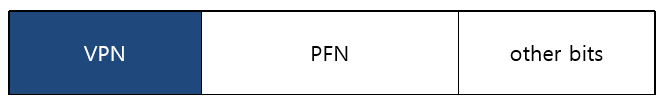 변환 정보 저장 위치에 제약이 없도록, 각 항목마다 가상 페이지 번호(VPN)와 물리 페이지 번호(PFN)가 있다. 하드웨어 측면에서 보자면, TLB는 완전 연관 캐시이다. 변환 주소를 찾을 때, 하드웨어는 TLB의 각 항목을 동시에 검색한다.
