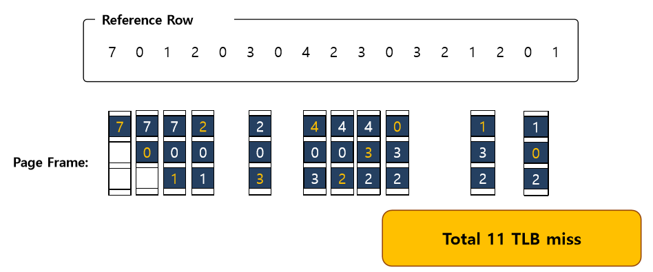 모든 캐시가 그러하듯 TLB에서도 캐시 교체(Cache replacement) 정책이 매우 중요하다. TLB에 새로운 항목을 탑재할 때, 현재 존재하는 항목 중 하나를 교체 대상으로 선정해야 한다. 어느 것을 선택해야 할까?
